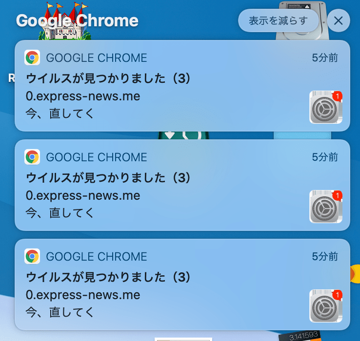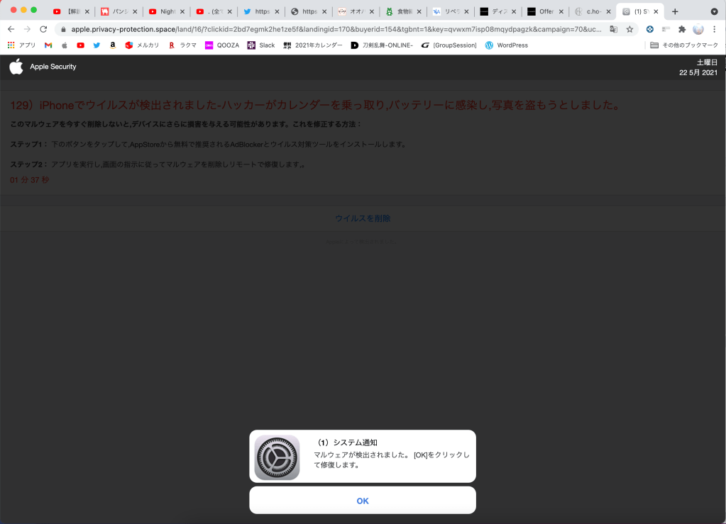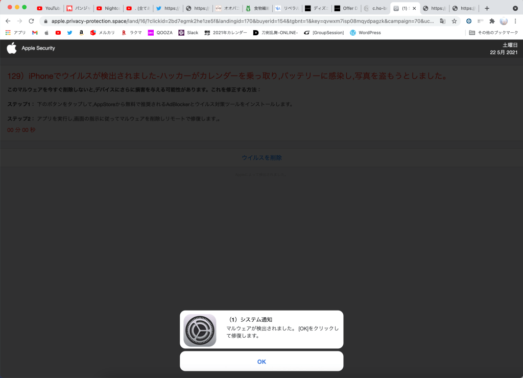 この手の警告や通知は嘘ですから引っかからないようにしないとダメですね。