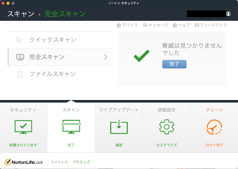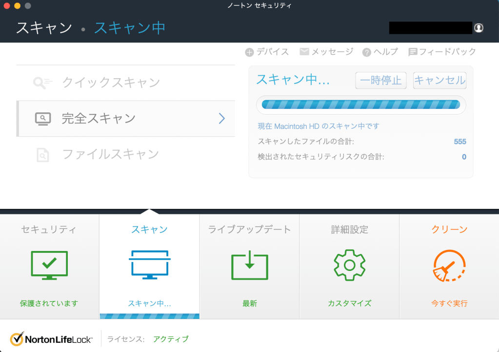 さて最後に念の為Nortonの完全スキャンを走らせてみます。