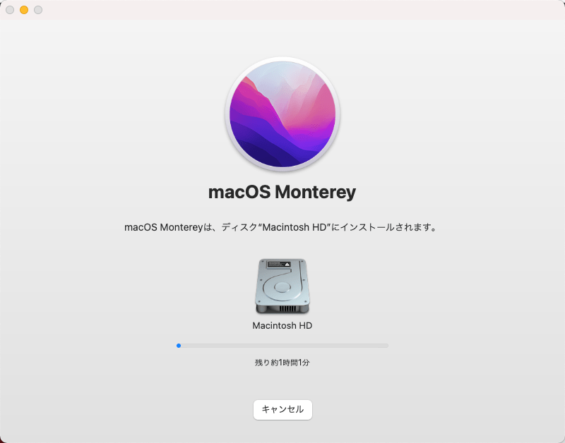 再起動でまたアップル画面で待機が入るのですが、大体35分ぐらいでした。