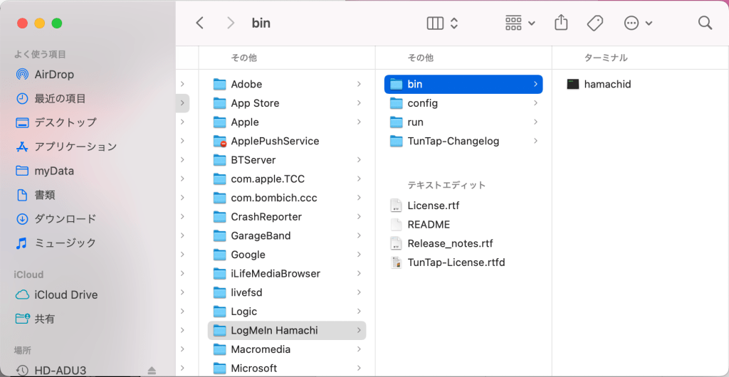 Macintosh HD/Library/Application Support/LogMeIn Hamachi/bin/hamachid